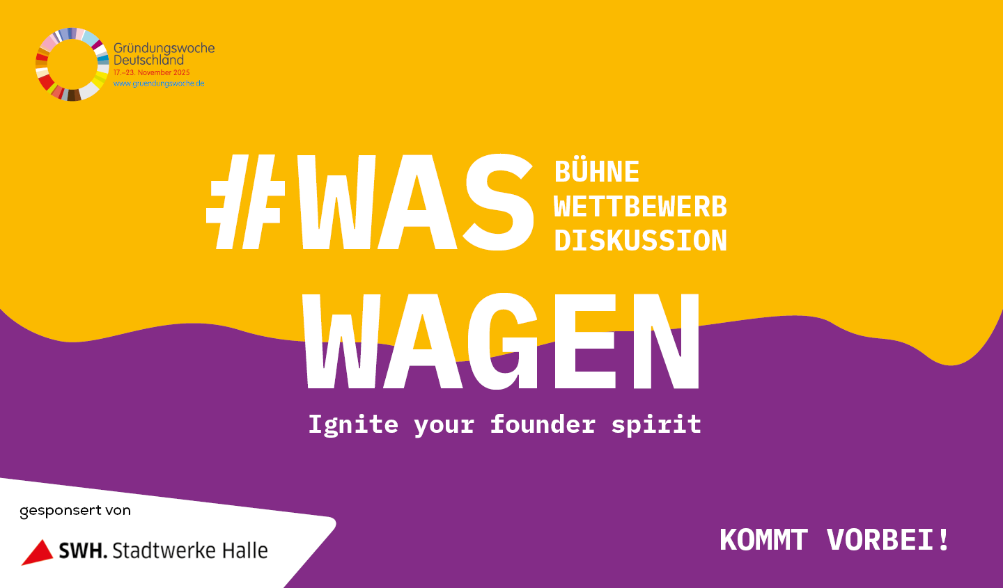 Unter dem Motto #waswagen bringt das Programm zur Gründungswoche der Uni Halle Studierende, Forschende, Lehrende, Alumni und Gründer:innen zusammen, um Ideen sichtbar zu machen und unternehmerische Perspektiven miteinander zu teilen.
